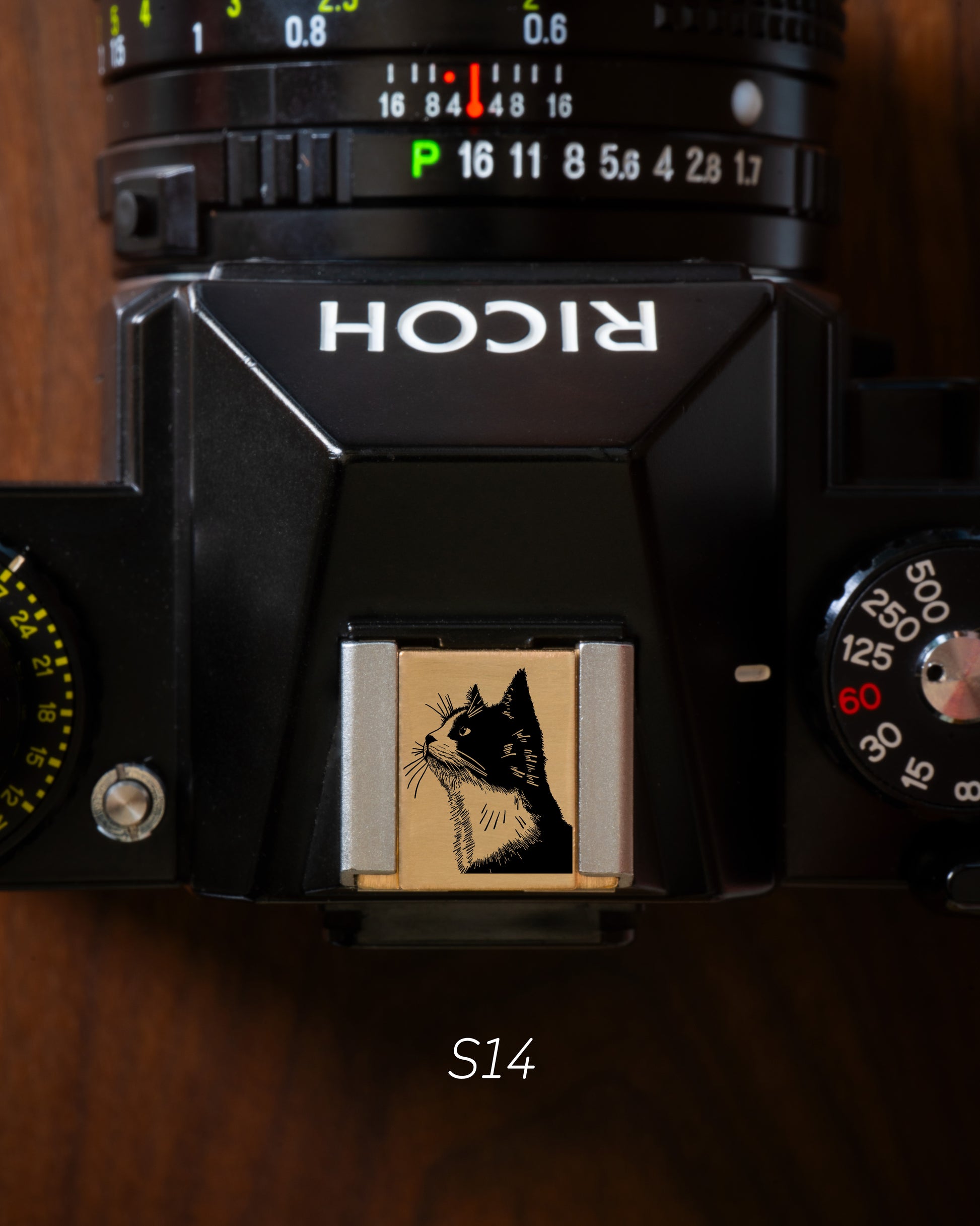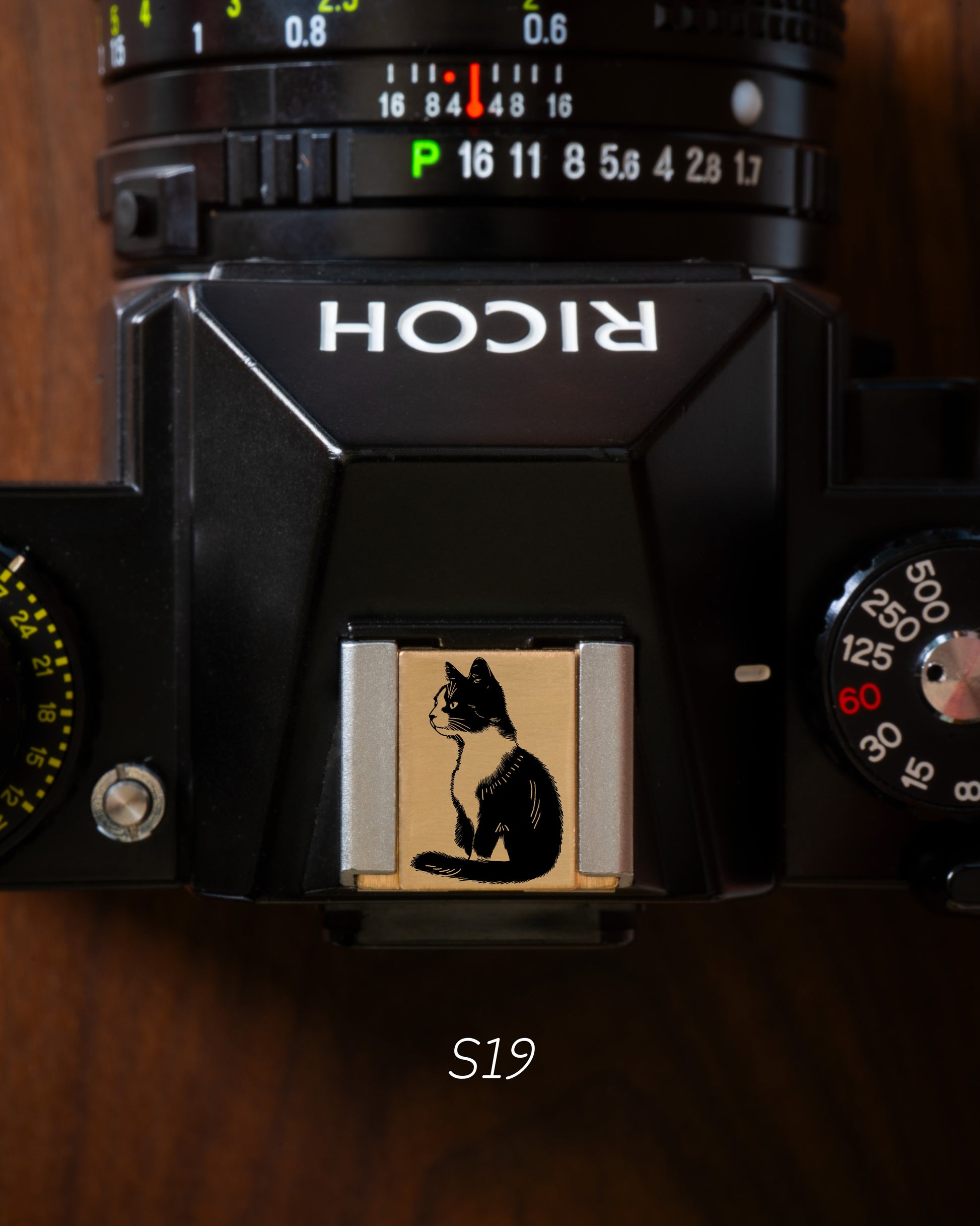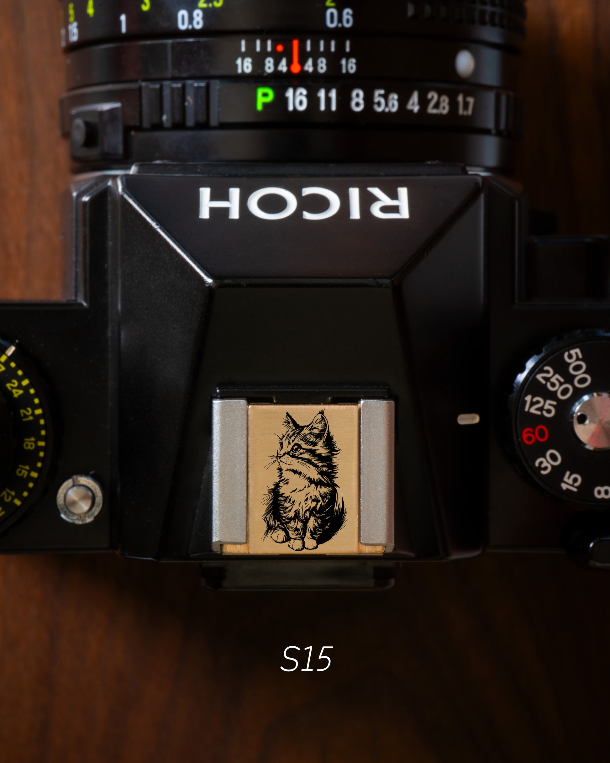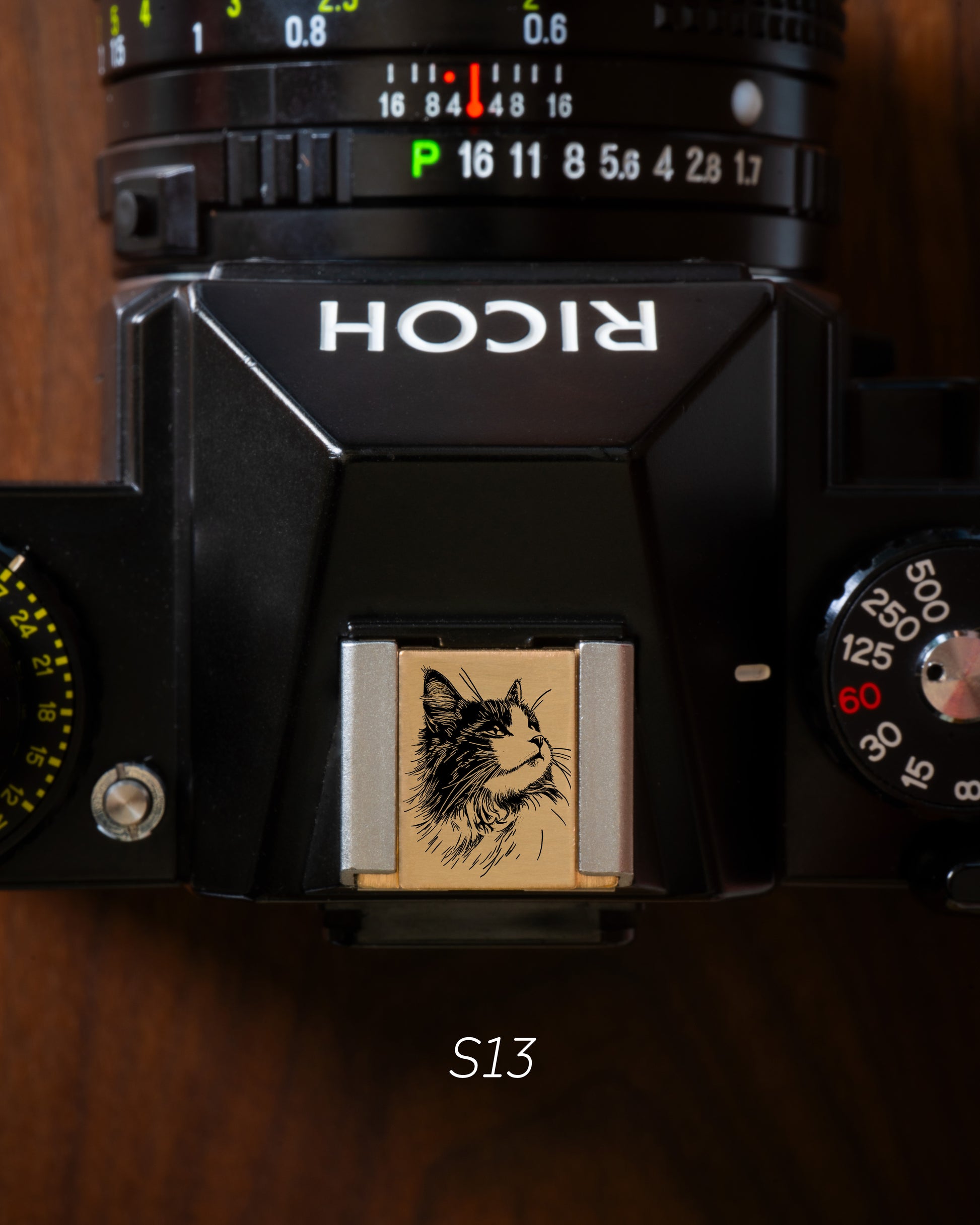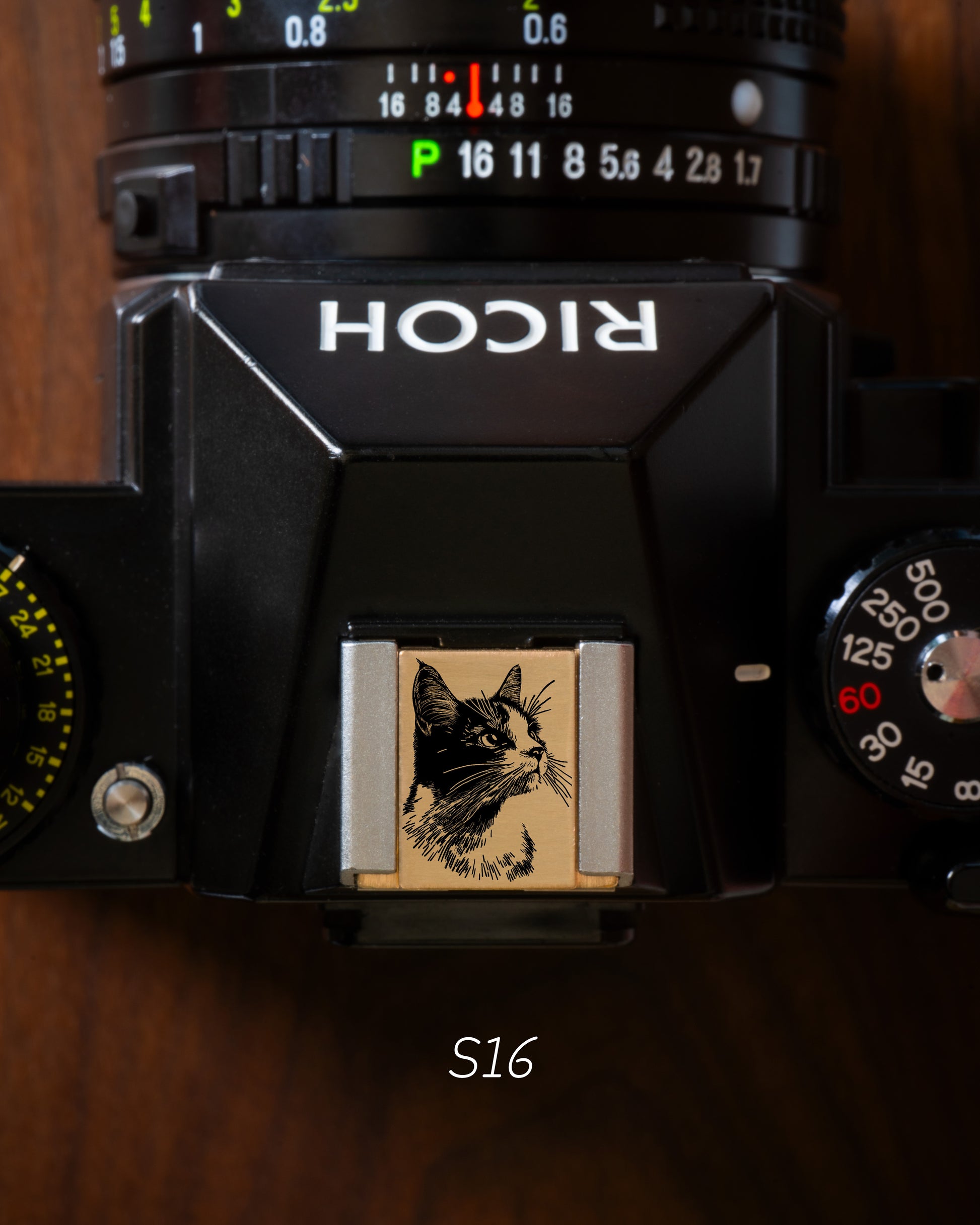 手描きの原画をもとに、金属製のホットシューカバーに繊細なレーザー彫刻を施しています。
