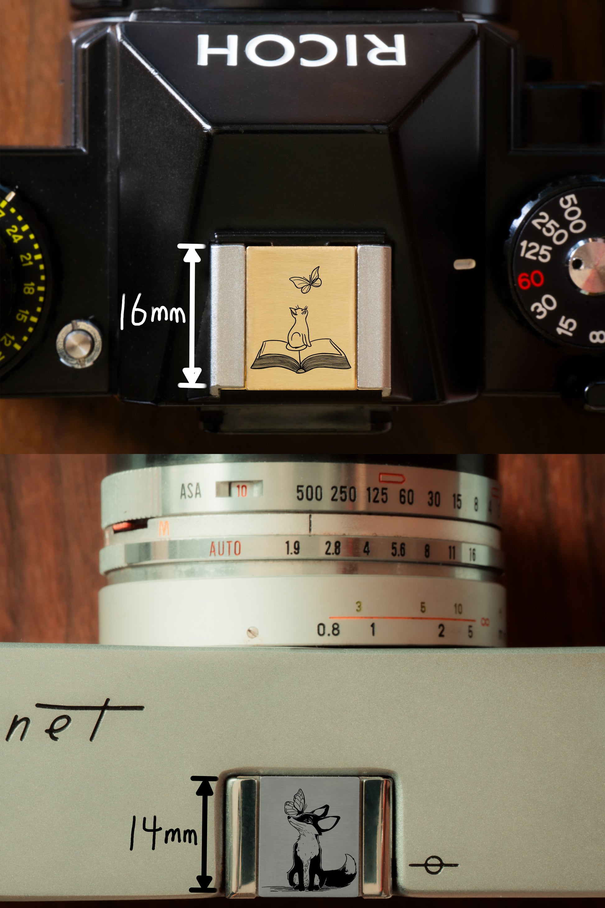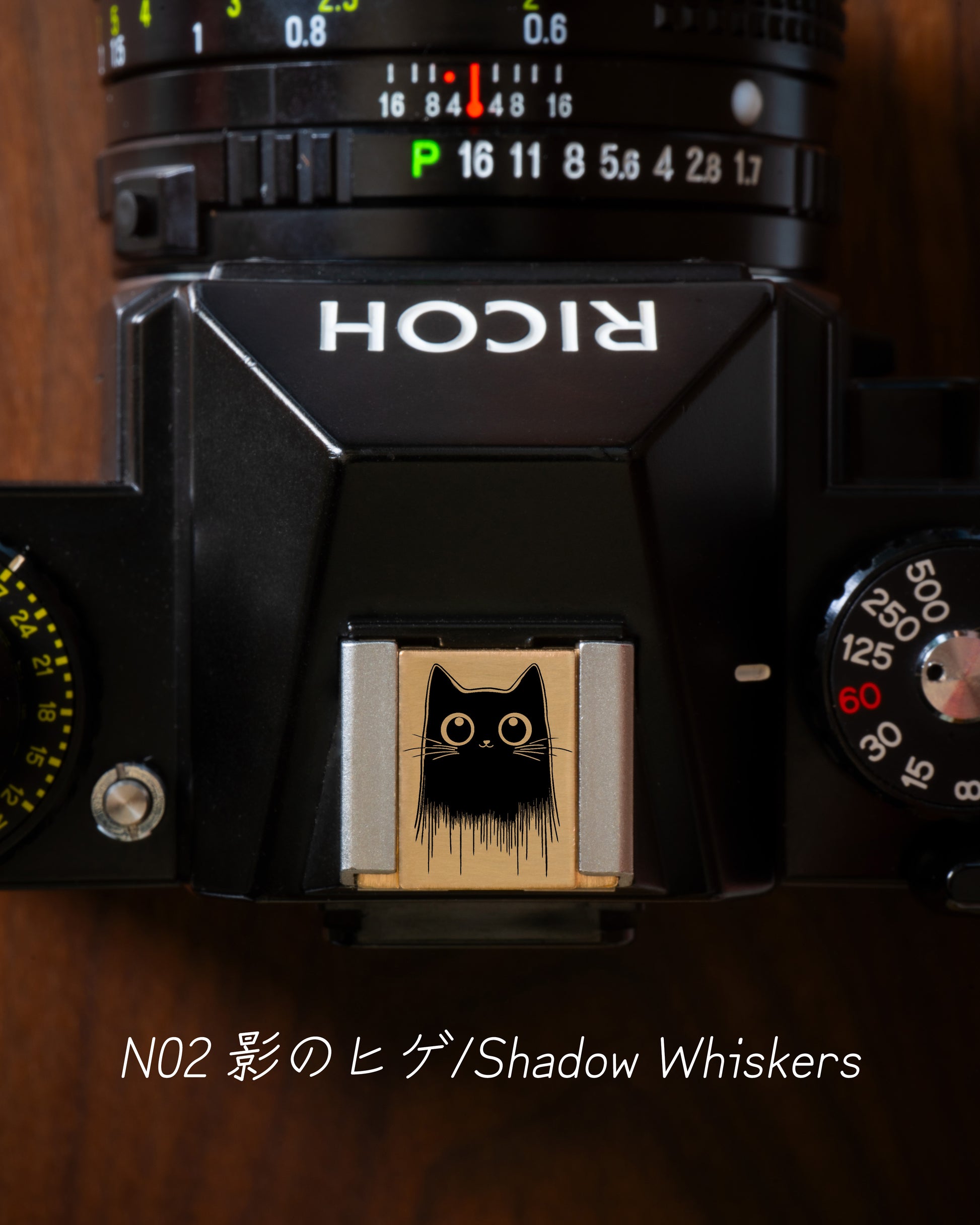 手描きの原画をもとに、金属製のホットシューカバーに繊細なレーザー彫刻を施しています。