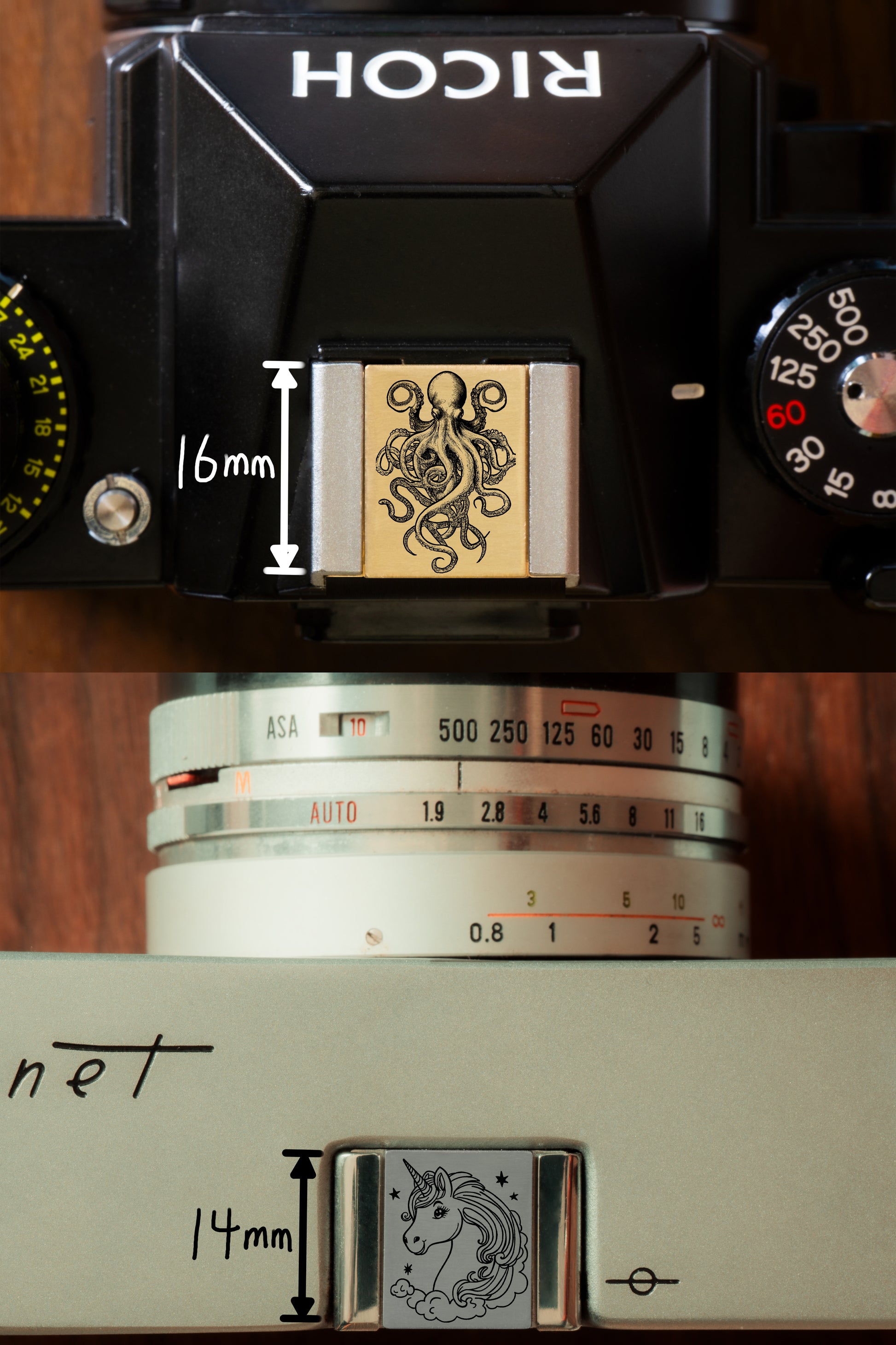 手描きの原画をもとに、金属製のホットシューカバーに繊細なレーザー彫刻を施しています。